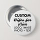 Custom Gifts for Him personalized 3" Round Button Pin Badge. Upload logo, photo, image, design and add your own text to make your own personalised birthday, Christmas, Father's Day, Valentine's Day celebration, office gifts for him (man, men, husband, boyfriend, father, dad, young man, son).