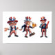 3 versions of a patriotic senior citizen dressed as Uncle Sam
