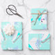 3-SET Personalized Ice Skating Patterns Blue Gift Wrapping Paper Sheets