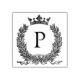 Stylish rubber stamp with vintage Monogram Initial Letter P, crown and wreath. Various sizes and modifications, customization are available. Antique graphics print, retro drawing clipart, old picture for mail art, scrapbooking, label, sticker etc