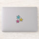 A vinyl decal with 3 smiling joyful stars. the stars are colored blue, pink and yellow with happy smiling faces. Cute and kawaii.