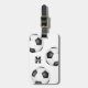 This soccer themed luggage tag is simply designed with three randomly arranged black and white soccer balls - personalize with player name and monogram on the front, address information on the back - by katz_d_zynes