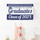 Do you work at a school and want to celebrate your graduating classes achievements on school grounds? Do you represent a housing development with a school within and want to celebrate the graduating class at the entrance of your community? Then this 3' x 5' blue and white "Congratulations Graduates" banner is for you! This celebration graduation banner is fully customizable from the text to the color combinations. You can even personalize the banner with the school colors. All graduate banners are hemmed and welded for a clean finished edge. This class of 2024 banner is set as an "indoor banner" by default. For outdoor use, choose the "outdoor with grommets" option before checkout for easy installation on any surface.