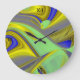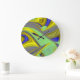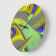 3D Abstract Rainbowart in Gold Yellow Blue Large Clock