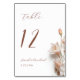 This elegant wedding table number card features blush 3D boho flowers on a white background.