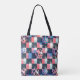 A bold 3D geometric pattern tote bag combining a checkerboard grid and scattered glossy spheres in coral, blue, and charcoal tones. The undulating surface and reflective textures create depth, movement, and modern energy. Perfect for design lovers and contemporary decor enthusiasts.