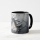 This is a fun Christmas season mug that is definitely not average! A gradient gray cracked snow wall displays a white Holiday tree with gold decorations. Tiny stars dot the sky behind the tree. Done in 3D style, it almost looks real.