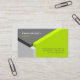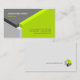 Business card / profile card template for architects / designers with isometric 3D design elements and cube logo on lime green and grey.