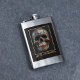 Carry your favorite spirits in striking style with this unique flask featuring the detailed 3D Day of the Dead skull design. The design showcases a black base, richly adorned with vibrant and intricate floral and scroll patterns in contrasting metallic gold, teal, and copper, embodying the spirit of Día de los Muertos. These traditional sugar skull decorations include stylized marigolds (cempasúchil), the iconic flower of Día de los Muertos, along with swirling vines and symbolic flourishes. The metallic accents give the skull a dimensional, almost embossed appearance, making these culturally significant details truly pop. This flask is a bold and artistic accessory, perfect for adding a touch of personality to your everyday carry or as a memorable gift for those who appreciate unique and culturally rich designs.