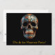 Invite your guests to a vibrant and memorable Día de los Muertos celebration with this striking postcard. The front of the card features a captivating 3D Day of the Dead skull design, showcasing a black base adorned with intricate and colorful floral and scroll patterns in metallic gold, teal, and copper, embodying the festive spirit of the holiday. Below this eye-catching design is a customizable text field, perfect for a short, impactful message like "Celebrate Día de los Muertos!" or a simple "You're Invited!".