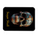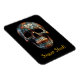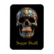 Add a vibrant and artistic touch to your refrigerator, locker, or any magnetic surface with this striking flexible magnet featuring the detailed 3D Day of the Dead skull design. The design showcases a black base, richly adorned with intricate floral and scroll patterns in contrasting metallic gold, teal, and copper, embodying the spirit of Día de los Muertos. These traditional sugar skull decorations include stylized marigolds (cempasúchil), the iconic flower of Día de los Muertos, along with swirling vines and symbolic flourishes. The metallic accents give the skull a dimensional, almost embossed appearance, making these culturally significant details truly pop. Below the captivating skull artwork is a customizable text field, allowing you to add a name, a meaningful date, or a personal message, making this magnet a unique and stylish way to celebrate Día de los Muertos or showcase your individual flair.