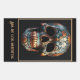 Add captivating artistry to any surface with these striking stickers featuring a detailed 3D Day of the Dead skull. The design showcases a black base, richly adorned with vibrant and intricate floral and scroll patterns in contrasting metallic gold, teal, and copper. These traditional sugar skull decorations include stylized marigolds (cempasúchil), the iconic flower of Día de los Muertos, along with swirling vines and symbolic flourishes. The metallic accents give the skull a dimensional, almost embossed appearance, making these culturally significant details truly pop. Below the striking skull design is a customizable text field, allowing you to add a name, a meaningful date, or a personal message, making these stickers a unique and stylish way to celebrate Día de los Muertos or showcase your individual flair.
