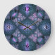 3D Fractal Art Pattern Turquoise Purple Pink Large Clock