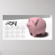 Cute and adorable Pig (3D computer art view) as piggy bank. Design on poster (28"x14") with calendar 2021. Available with other view of the same pig.