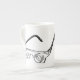 This mug is imprinted with a Bach Solos Suite for Cello. It was purchased as a thank you gift for a professional cellist friend who often performs this work. The cup is made of a high-grade ceramic and is fairly light. The walls are not too thick and it is a small to medium size. It's well finished, has a high-gloss glaze, and looks very elegant. The Bach Solo Suite score on the example I received was clear and had high contrast. Even though the staffs were small, the music was easy to read. The cellist who received this cup immediately knew what the music was as soon as she set eyes on it.