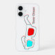 A graphic of a pair of 3D anaglyph glasses, also shown in 3D. One outline and lens are cyan and the others are red. Add your name or initials, or leave blank!