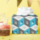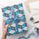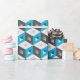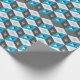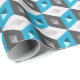 Custom wrapping paper with retro pattern of seamless isometric cubes on teal aqua blue and grey.