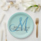 3d Monogram Green Mint Aqua Blue Paper Plates
