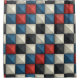 A bold and architectural 3D geometric pattern shower curtain featuring pyramid-shaped studs in red, blue, cream, and dark gray tones. Its seamless, high-contrast design creates a striking illusion of depth and texture.
