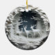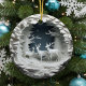 Bring the quiet magic of a snowy forest to your holiday décor with this stunning ceramic Christmas ornament. Featuring an intricately layered design of three white deer standing gracefully in a moonlit woodland, this piece captures the stillness and wonder of winter in breathtaking detail.