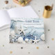 This modern lake house guest book features a 3D arrangement with sea stars, shells and water in blue and neutral tones and a custom beach house text with the year established.