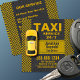 Square business card for taxi companies. Features a yellow taxi with a 3D effect from above on a street. The back has enough space to list your company's services. Perfect for taxi companies, taxi drivers, and other transportation service providers.