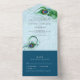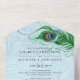 3in1 Peacock Blue Green Feather Wedding RSVP All I All In One Invitation
