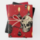19" x 29" Wrapping Paper Sheet Set, 19" x 29" Matte Sheet. Gothic Style Festive Skull Holiday Wrapping Paper, Red, Black