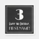 This Roaring '20s inspired and vintage look birthday paper napkin design features a large art deco look inspired number "3", the message "Happy 3rd Birthday,", a custom name, and a border pattern consisting of thin lines. Birthday themed paper napkins like this might be used when celebrating somebody’s third birthday. [~Z0000461]