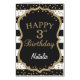 3rd Birthday Black Gold Glitter Extra Large Jumbo Card