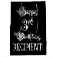 This lavish and ornate birthday giftbag design features the message “Happy 3rd Birthday,” in fancy script style text, on a black colored background. It also features an editable recipient name. An opulent gift bag like this might be used when wrapping presents being given to somebody in celebration of their third birthday. [~Z0000557]