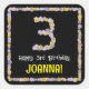 This fun, garden-inspired birthday themed square sticker design has the message “Happy 3rd Birthday,” and an editable recipient name. The large number “3” plus the border feature flower icons. Floral birthday themed stickers like these might be used or distributed at a birthday party for somebody who is celebrating their third birthday, or perhaps used when preparing presents/gifts or invitations for such an event. [~Z0000652]