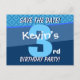 3rd Birthday for Boy Save the Date Blue V07B Announcement Postcard