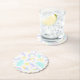 3rd Birthday Paper Coaster with a funny unicorn, which is surrounded by cute pictures of a rainbow, cloud, sun, ice cream...