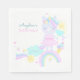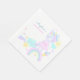 3rd Birthday Paper Napkin with a cute unicorn who is surrounded by cute pictures of a rainbow, cloud, sun, ice cream.