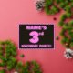 The front of this fun and bold third birthday party/celebration foil announcement/invitation card features a personalized name, a large number “3rd”, the message “BIRTHDAY PARTY!”, and a border, all featuring a feminine light pink and dark pink striped pattern. The back features personalized details about the event, such as the date, time, venue/location, and any other useful information. Personalized invitations like these might be used to invite attendees to a birthday party/gathering being held in celebration of somebody’s 3rd birthday. [~Z0000597]