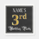 This luxurious and elegant birthday-themed paper napkin design features a custom name and the message “3rd Birthday Party”. The large number “3rd” has an imitation/faux gold-inspired coloring pattern, the words “Birthday Party” are in ornate script-style text, and the background is colored black by default (although it can be customized). Opulent, fancy paper napkins like this might be useful at a birthday party/celebration being held to celebrate somebody’s third birthday. [~Z0000565]