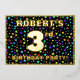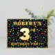 The front of this upbeat third birthday party foil invitation card design features a customizable name, a large number “3rd”, the message “BIRTHDAY PARTY!”, and a border. The background of the front has an exciting, colorful starfield pattern. The back features personalized details about the event, such as the date, time, place/venue, and any other information that may be relevant. Personalized invitations like these might be a fun way to invite attendees to a birthday gathering being held to celebrate somebody’s 3rd birthday. [~Z0000600]