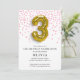 3rd Birthday Pink Confetti and Gold Balloon Invitation
