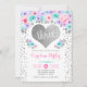 3rd Birthday - Silver Heart Teal Purple Pink Invitation