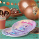 These adorable unicorn paper plates are the perfect addition to your child's 3rd birthday party! The design showcases a charming unicorn playfully interacting with a shimmering, ombre number three against a backdrop of soft, pastel colors. The magical details and sparkling elements create a festive atmosphere for a truly unforgettable celebration. These plates are not only functional but also enhance the overall aesthetic of your party setting. Add a touch of whimsical charm to your event with these unique party supplies!