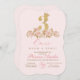 3rd Cute Pink Gold Crown Princess Birthday Invitation