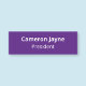 Personalize our purple name tag pin with employee name, professional job title, or other custom text. It's lightweight and available with a magnetic back fastener (do not use with pacemakers) or with a safety pin back. Designed in purple and other colors (all colors are customizable). Available in other shapes. The rectangle name tags are available in other sizes. No minimum order quantity and no setup fee.