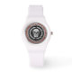 I only have one complaint. I ordered the watch with clear case and strap, and what was sent was white case and strap. I'm going to keep it because 1) it looks very nice in white, and 2) it would take too long to get a replacement made and sent in time for my occasion. Aside from the mix up with the color, the watch does look very good in white. The purple dial is actually sparkly which did not show in the online images. That was a nice surprise. If you like Swatch watches this is very similar to those. It's 33.6mm in diameter, 10.5mm thick, and 40.6mm lug to lug. Stainless steel case back says 3ATM/30m WR, so no swimming or showering or submerging this one. If you like Woodstock, this is a great choice.