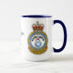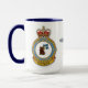 High quality 15 oz ceramic mug featuring the crests of 4205 Squadron and 14 Wing, and a top view of the CP-140 Aurora. Interior and handle of mug are cobalt blue.