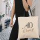 40 and Classy Elegant Black Golden Script Birthday Tote Bag. Elegant design with trendy script in black and golden colors. The bag is a great gift for a woman celebrating her 40th birthday.