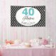 Elegant 40 and fabulous personalized 40th birthday party banner, the words 40 and sassy are in blue glitter and black. You can easily customize this banner with your name. Matching products such as 40th birthday invitations and 40th birthday party supplies are available in our store. If you need any help please contact us through our store. We're happy to help you make your 40th birthday party a fabulous event!