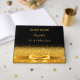 Elegant, classic, glamorous and feminine. A faux gold colored ribbon with a bow with golden glitter and sparkle, a bit of bling and luxury. A guestbook for a 40th birthday party. The name is written with golden trendy hand lettered style script. Black background. With the text on the front cover: 40 and Fabulous!