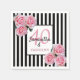 A napkin for a 40th and fabulous birthday party. Classic slim black and white vertical stripes as background. With girly and feminine pink roses as decoration.