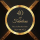 Elegant, classic, and simple 40 and fabulous birthday sticker. Chic classic black background color with a faux gold frame. The text: 40 and fabulous. Templates for her name and a date. Date of birth or the date of the party. Golden letters. Perfect for party favors or as a save the date reminder for your guests.